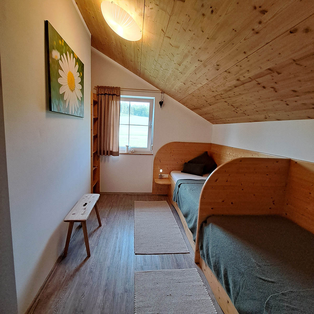Das Kinderzimmer hat die gleiche Ausstattung wie die anderen Schlafzimmer. Einzige Unterschiede: